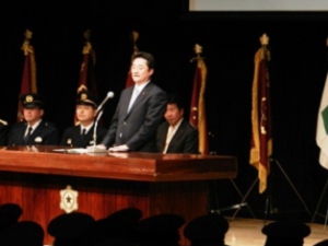 私からは「消防職員・消防団員の皆さまの、日ごろからの各種活動に、心から感謝と敬意を申し上げます。市議会といたしましても、安全・安心のまちづくりを進めていくため、引き続き積極的に取り組んでまいります。」とあいさつをいたしました。